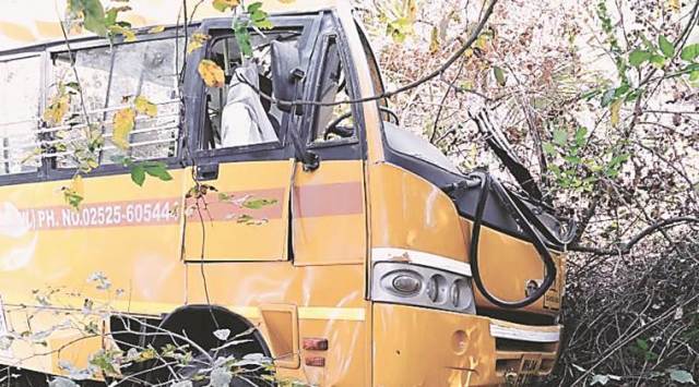 Police said the school bus was ferrying students of Sir JP International School. (Express photo)