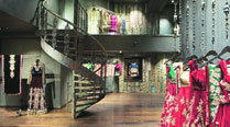 The store has a light-to-heavy approach to the order in which the clothes are displayed. To the left, as one enters, is the designers’ popular-with-the-NRI-market “global line”, comprising pastel-shaded chiffon maxis and gowns, with bodices done up in delicate lace and transparent panelling. The designers, who debuted at Lakme Fashion Week in 2006, have carved a comfortable place in the bridal couture market, with a formidable client list that comprises NRIs from across the world.
