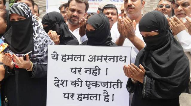 Several prominent city organisations and activists gathered at Azad Maidan Wednesday to condemn the attack on Amarnath pilgrims. Feroze Mithiborwala, one of the organisers, said, “The protest is being held to condemn the Amarnath terror attack on Hindu pilgrims. The protests have been spontaneous across the country, with the largest being held in Srinagar, despite the crackdown there.”