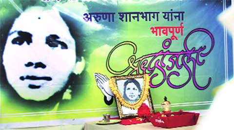 Nurses pay tribute to Aruna Shanbaug at the Nurses College building in Parel on Tuesday. (Source: Express photo by Vasant Prabhu)