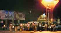Police on the spot in Lalbaug where clashes took place on Sunday night. (Source: Express Photo by Vasant Prabhu)