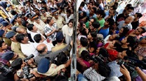 to convince the residents, amid heavy security presence, to let them in as the residents had barricaded themselves at the