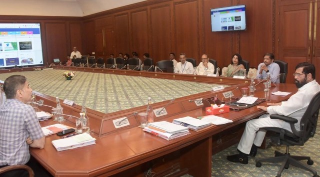 Maharashtra Chief Minister Eknath Shinde chairing information technology review meeting on May 19, 2023, Friday. (Photo-Twitter/@CMOMaharashtra)