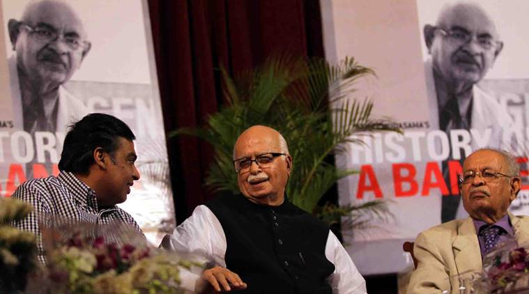 Former deputy prime minister L K Advani and industrialist Mukesh Ambani at the launch of Nana Chudasama’s book “History on a Banner” in Mumbai. (Express Photo By Pradip Das)