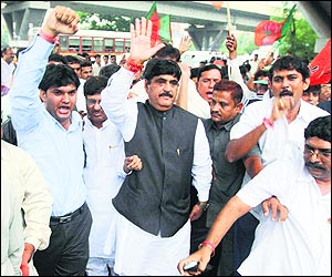 Munde started protesting at the terminal,saying he had a right to fly anywhere in the country, said an airport official. Munde was soon joined by thousands of supporters. BJP leader Kirit Somaiya threatened to disrupt airport activities if Munde was not allowed to fly.