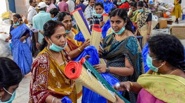 A donation drive at a mall in Mumbai. (Express photo by Narendra Vaskar)