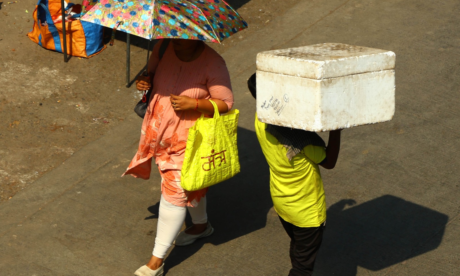 People struggling to cope with intense heat, as temperatures climb toward a maximum of over 31°C for March in Mumbai.