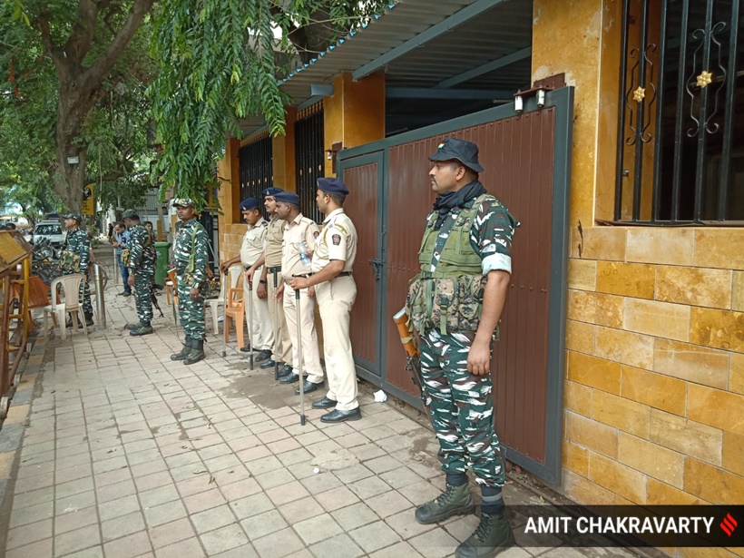 Security outside Member of the Maharashtra Legislative Assembly Sada Sarvankar's house.