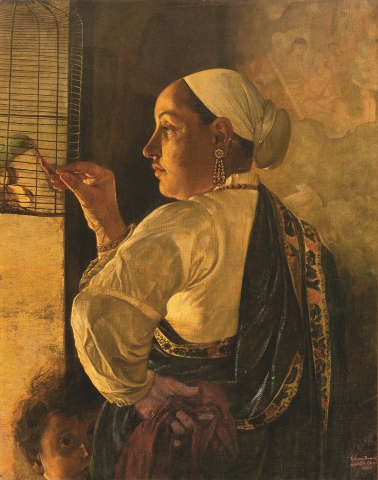 Pestonji Bomanji 1851-1938 Feeding the Parrot – oil on canvas 1882 (Courtesy: Pundole Art Gallery)