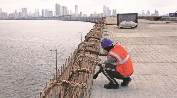 Nearly 7,500 workers and engineers are working day and night to help end Mumbai’s 60-year wait for a connector that will allow commuters to breeze across Thane Creek into Navi Mumbai.