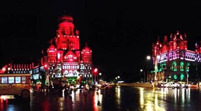 Mumbai’s Chhatrapati Shivaji Maharaj Terminus and BMC headquarters illuminated in tricolours on the eve of Independence Day. (Express File photo by Pradip Das)