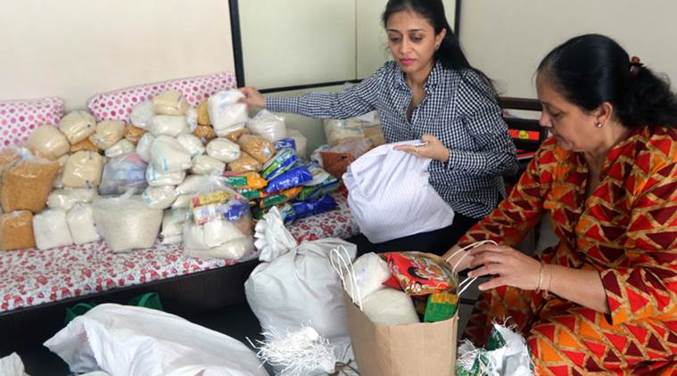 Food army is known to reach out to people Volunteers from Mumbai segregate flood relief material donated by the general public to be sent to Kerala, in on Sunday. (Express Photo By Ganesh Shirsekar)