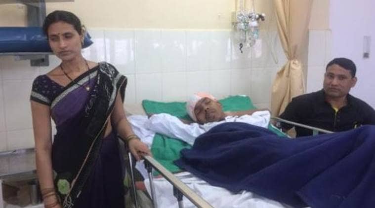 Santlal Pal with his wife Manju after the surgery. (Express)