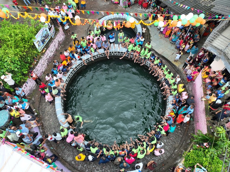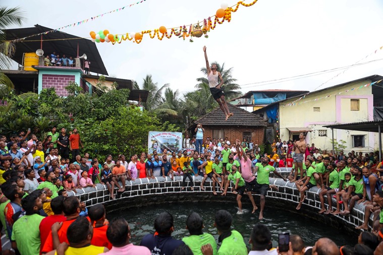 Raigad witnessed a unique 'Dahi Handi' celebration today at Kodoru village in Alibag tehsil. The 'handi' was hanging over a well and required 'govindas' to make a leap to reach it, instead of the customary human pyramid.