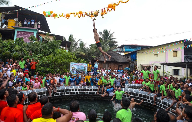 Dahi handis decorated with flowers have been hoisted many feet above the ground at several housing societies, roads, junctions and public grounds across the city. Dressed in colourful attires, Govindas have been visiting these places in trucks, tempos, buses and two-wheelers.