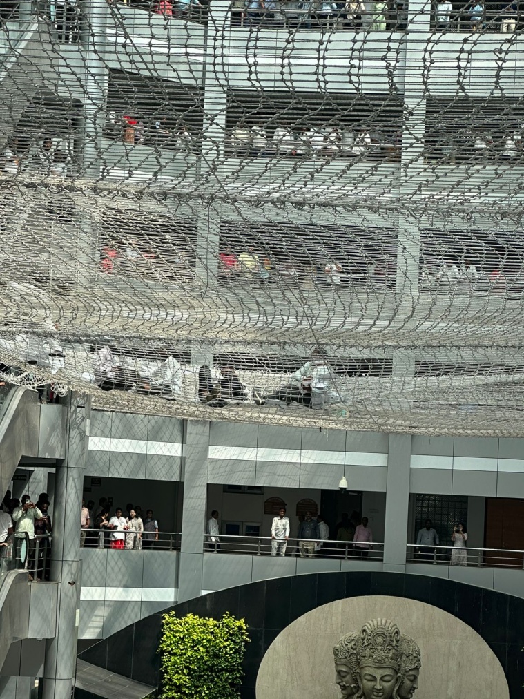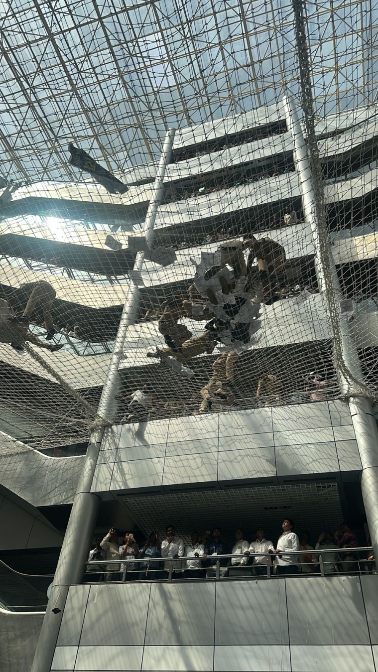 They jumped on the protective net placed on the first floor of the Mantralaya building in Mumbai.