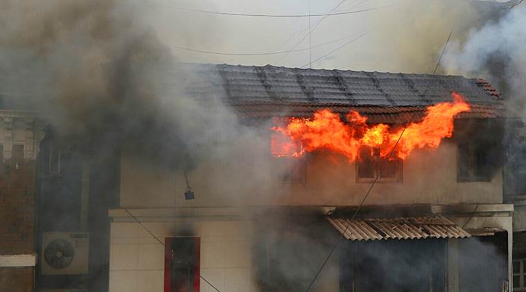 Fire at Kothare house in Girgaum on Sunday. (Express photo by Karma Sonam Bhutia)