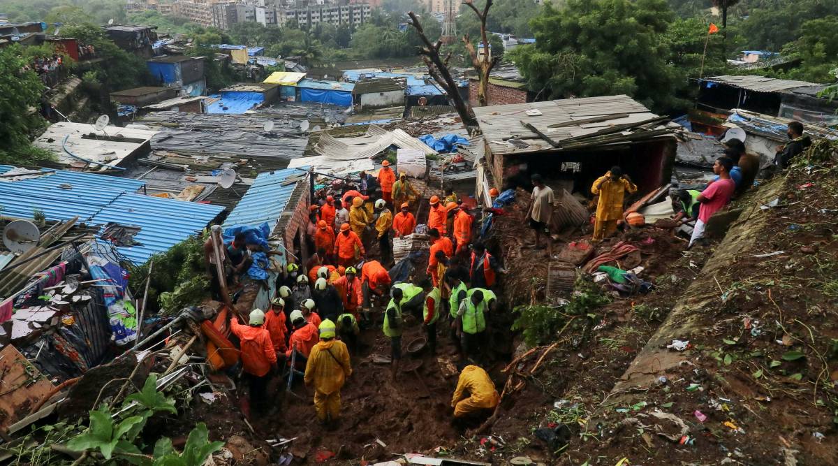 Rescue workers search for survivors after a residential house collapsed due to landslide caused by heavy rainfall in Mumbai, (Photo: REUTERS/Niharika Kulkarni)