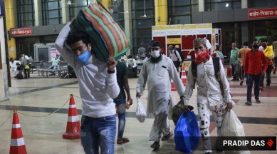 “We came back in February, hoping that we would get some work. But in the past two months, Covid-19 cases went up and we could not find any work. With new restrictions imposed, we will not get any work. We don’t have the money to survive here. In the village, we can earn through farming,” said Sohanlaal, who does odd jobs and lives in Kurla, near Kalpana Talkies.