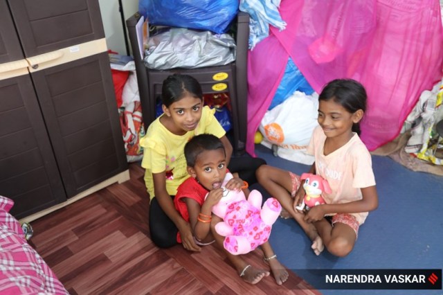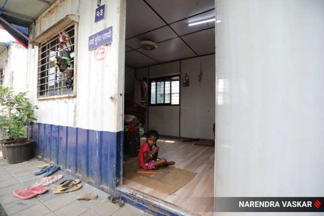 It’s a colony of containers – 42 in all – each with a nameplate of the ‘head of the family’. Container No. 23 is Varsha Suresh Pardhi’s. All of six years old, Varsha stays here with her younger sisters Vidisha, 4, and Urmila, 3.