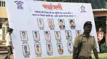 Preparations under way at a police memorial in Marine Drive on Tuesday to pay tributes to 26/11 martyrs. (Source: Express photo by Ganesh Shirsekar)