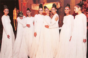 In his former collections such as Siyahi,Shararat,Shanti his clothes have brought his disquiet onto the ramp. But by having them pose as art pieces this time,he took away the palpable and infectious energy that defines a Rohit Bal show where the background noise (or voice) is his,whichever music he chooses and whoever his show-stopper may be.