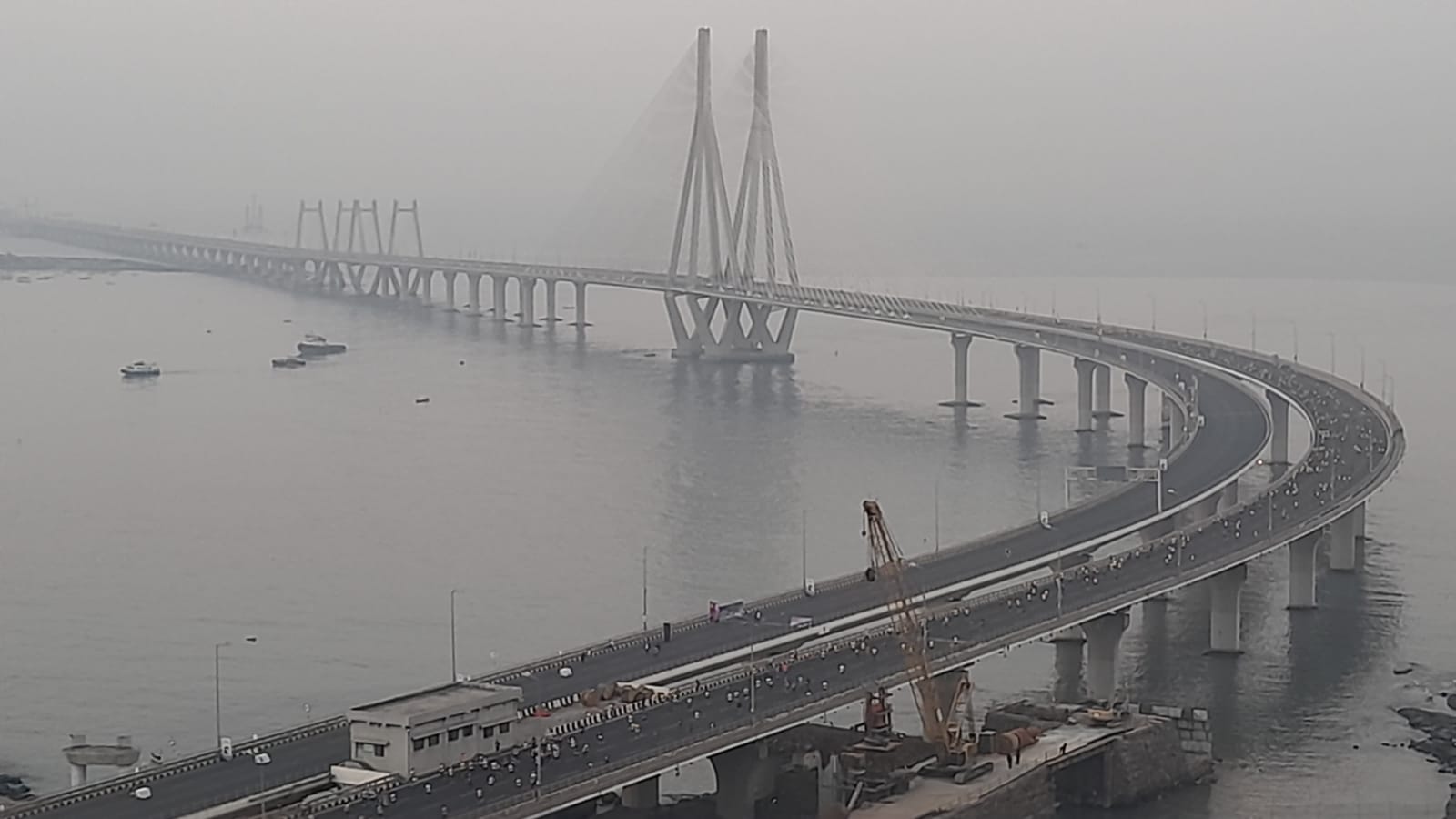Participants of Mumbai Marathon are seen on the Bandra Worli Sea Link. (Express photo by Pradip Das)