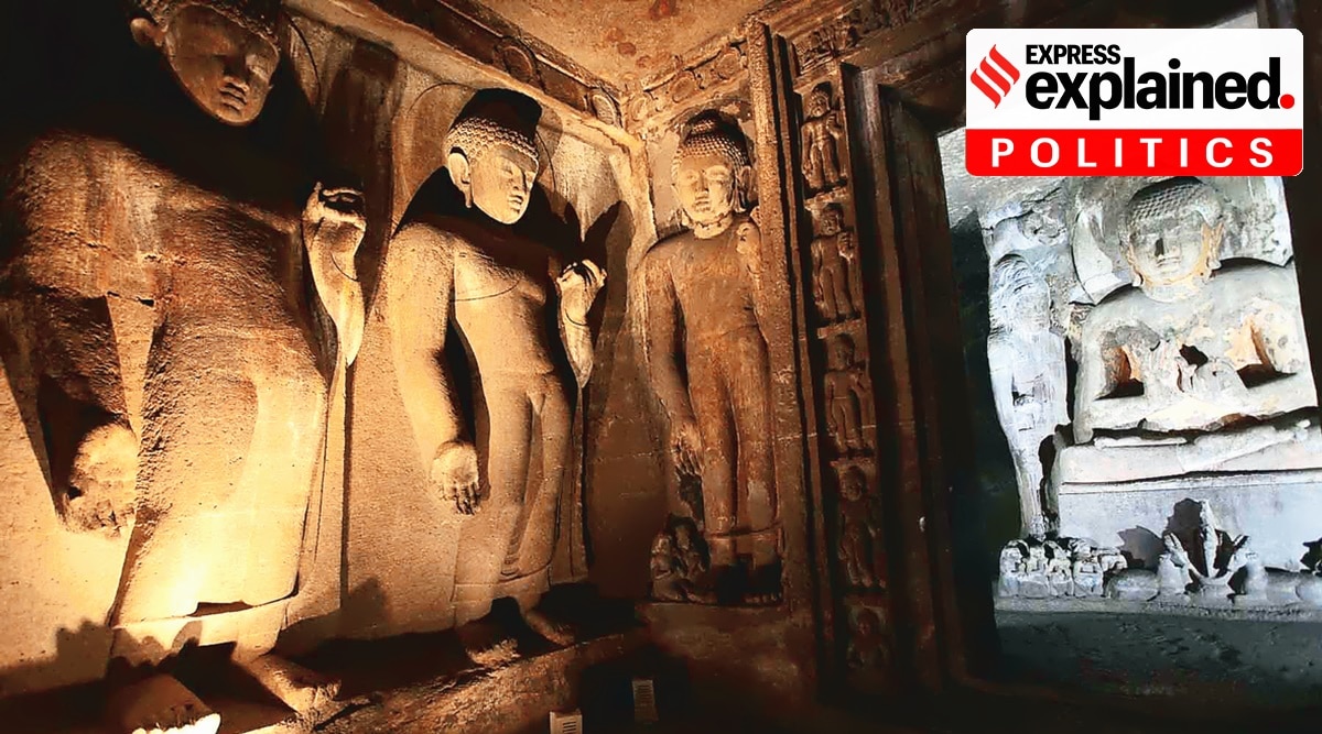 Paintings in the Ajanta caves, among several tourist spots in Aurangabad district.