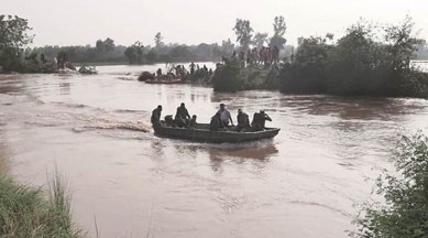 On Friday, The Indian Express visited the disputed stretch and found heavy machinery — including a JCB machine, three trucks, half a dozen trolleys — engaged in the de-silting process. Panchkula police control room was informed and two police parties, including one from the PCR wing and another from Police Post Ramgarh, soon arrived at the spot. The cops apprehended one of the tractor-trolley, which appeared to be on the side of Panchkula river bed of Ghaggar. The tractor driver argued that he was in Mohali (Punjab), and was later let off.