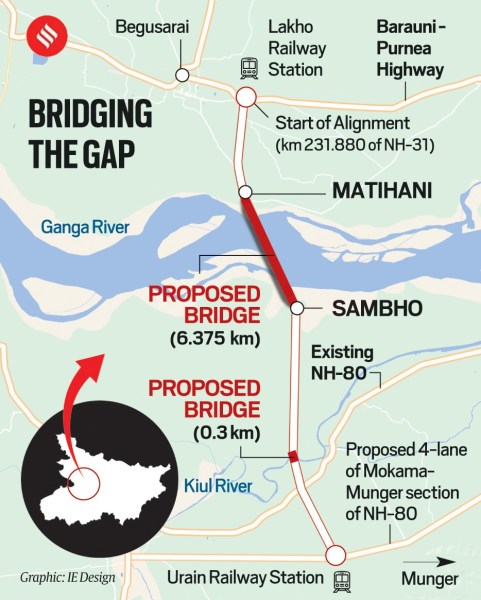 The bridge linking the riverine areas of Matihani and Sambho in Begusarai would also connect NH-31 (Patna-Mokama) and NH-80 (Begusarai-Purnea). The bridge would also hold greater importance in terms of the safety of 13 industrial units in Begusarai and Barauni by providing a base and easy access to NDRF teams in times of any industrial disaster.