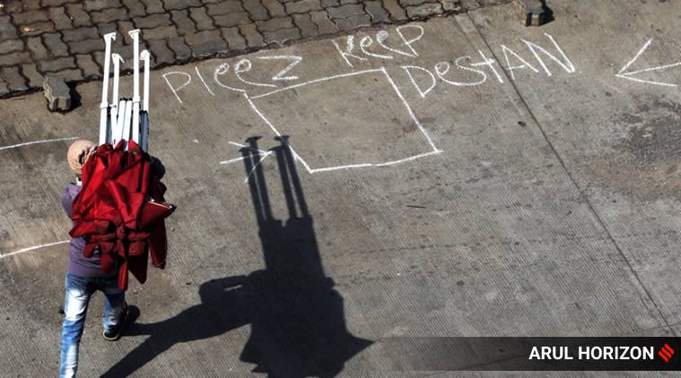 A vegetable vendor sets up his shop at NIBM annex during the lockdown.