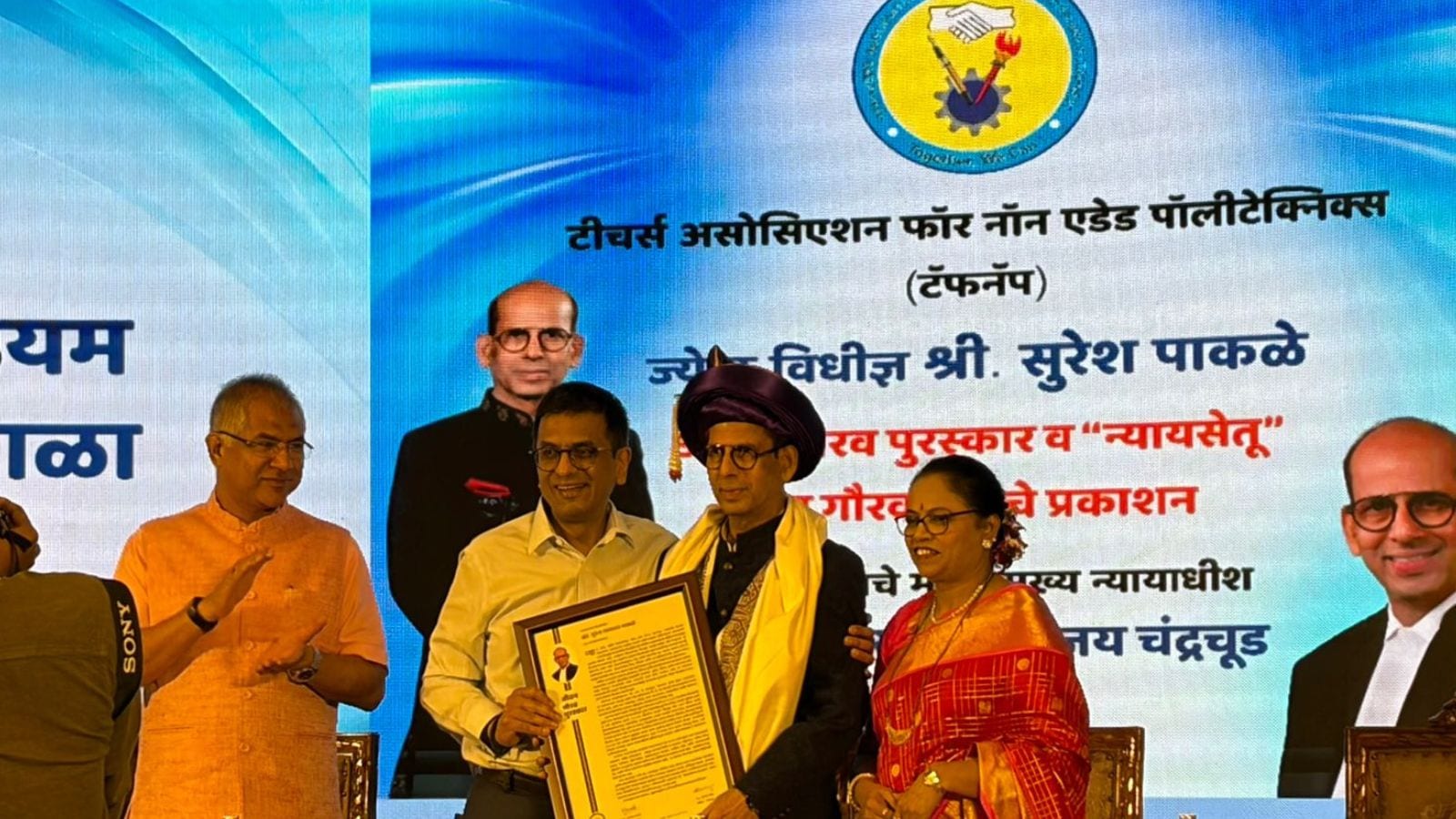 The Teachers’ Association for Non-Aided Polytechnics (TAFNAP) organized a ceremony on Saturday in Pune, in which Senior Advocate Suresh S. Pakale was honored with the Lifetime Achievement Award, presented by former Chief Justice of India Dhananjaya Y. Chandrachud.