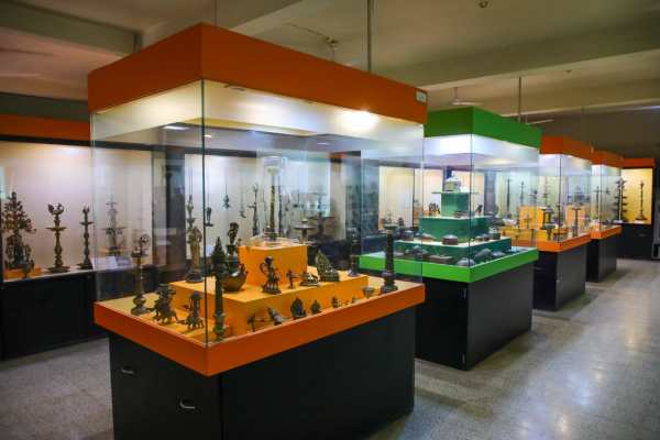 Pen boxes of wood, glass, ivory, copper and brass share space with ink-wells with bird and animal motifs. Arms and weapons come in varied forms, from battle-axes and tiger claws to bows, arrows, guns and small equipment. In the treasure trove are 500 lamps, such as tribal hanging lamps, a guru-shishya deep (lamp) and a poison-testing lamp. The oldest artefact is a ninth-century Tandava Gajasur. Following tradition, the names of the artisans were never inscribed on their work and have been lost in the haze of time.