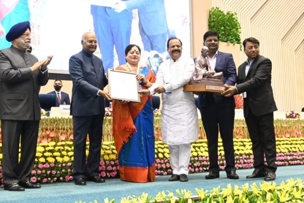 LMC team receiving the award from the President for bagging second spot in Swachh Survekshan 2021.