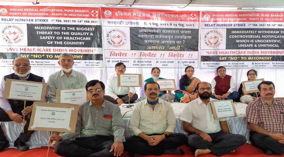 Indian Medical Association doctors are on a nationwide Relay Hunger Strike since February 1 till 14 to protest against the Central Council of Indian Medicine (CCIM) notification allowing Ayurveda doctors to perform Surgery. The IMA National President Dr J. A. Jayalal, IMA Maharashtra State President Dr R. S. Londhe and several other leaders are visiting the Pune branch on Tuesday afternoon to support the Pune doctors.