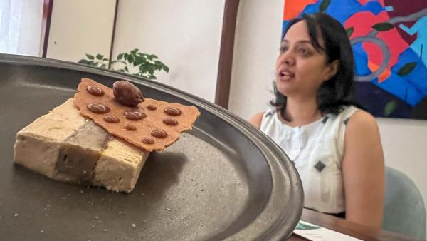 There was the time Somayaji, a wildlife enthusiast, travelled to a tribal village in Vidarbha and came across indigenous families who revered the Mahua tree. Somayaji brought back several sacks of dried Mahua flowers. The sweet memory of the visit transpired into a dessert, a biscuit, topped with a mahua and caramel, forming a bridge over passion fruit and banana bread layers.