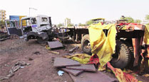 Dattawadi police said the truck was carrying metal plates weighing over 25 tonnes, which fell on the ground after the accident. Senior inspector S S Nimbalkar said, “The front tyre of the truck was found burst. We are trying to find out whether this caused the accident or it was the other way round.”