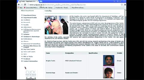 Other webpages of the website carry outdated information, almost four years old. For instance, the ‘Department profile’ webpage states – ‘The Centre has recently been awarded a grant by the Navajbai Ratan Tata Trust to develop Teaching capacity in Women’s Studies for the period 2008-2011. The centre is launching a Masters programme in Gender, Culture and Development from the academic year 2009- 2010.
