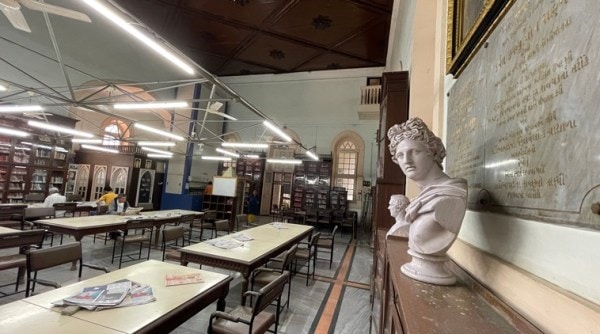 But there is a trickle of life in the building’s southern wing which houses Shree Arvindbhai Maniyar Pustakalaya (AMP), one of the oldest public libraries of India and popularly known as the Lang library. Elders keep trudging in and out of the tree-shaded majestic entrance of this library while a handful of young students, most of them aspiring bureaucrats, keep warm some of the chairs in the reading room on the first floor these days.