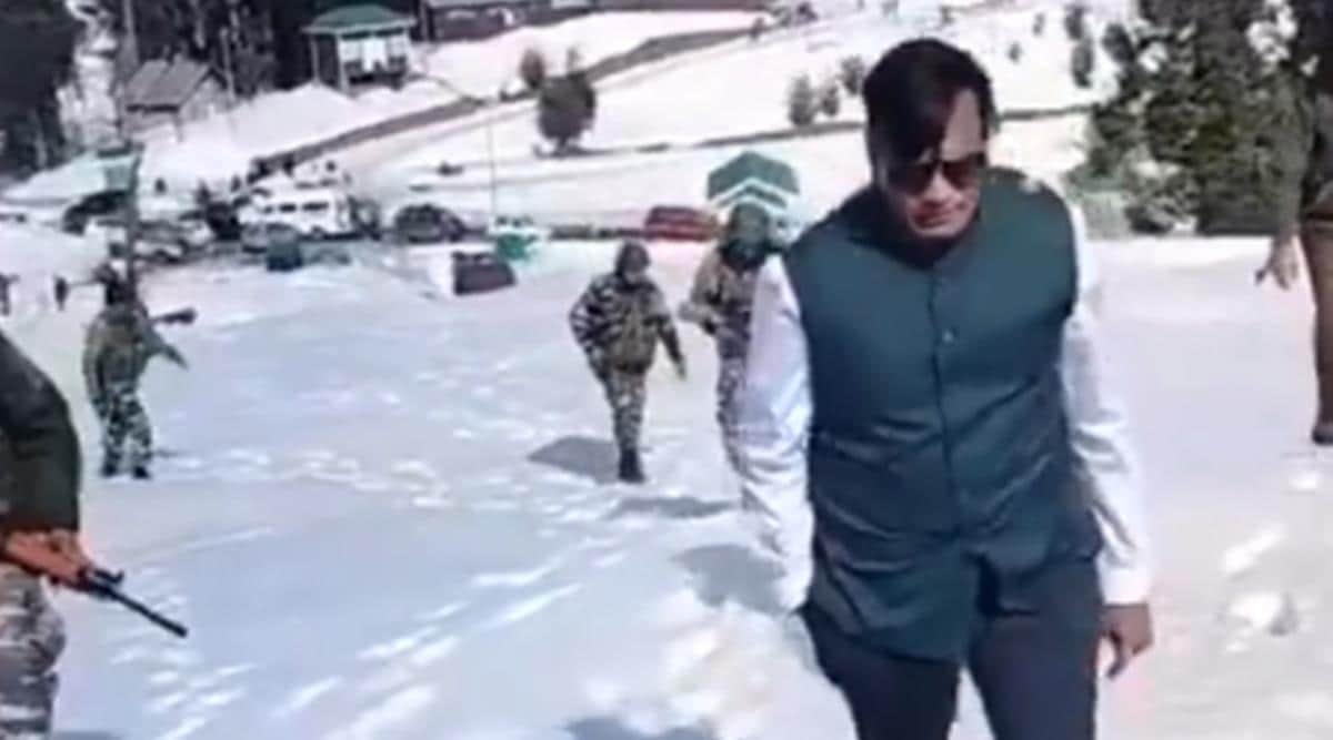 Purported videos of Patel surveying the snow slopes of Gulmarg with a posse of armed security personnel around him and of a convoy of vehicles accompanying him weaving through a Valley town have been circulated widely across social media platforms. (Video screengrab/ @bansijpatel/ Twitter)