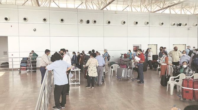 At the Sardar Vallabhbhai Patel International airport in Ahmedabad on Wednesday. (Express photo)