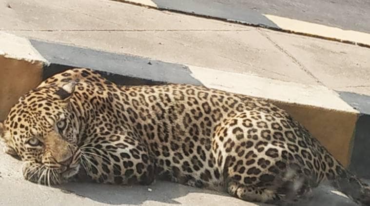 The leopard was spotted beside a median on an underpass near Katedan in Rajendranagar.