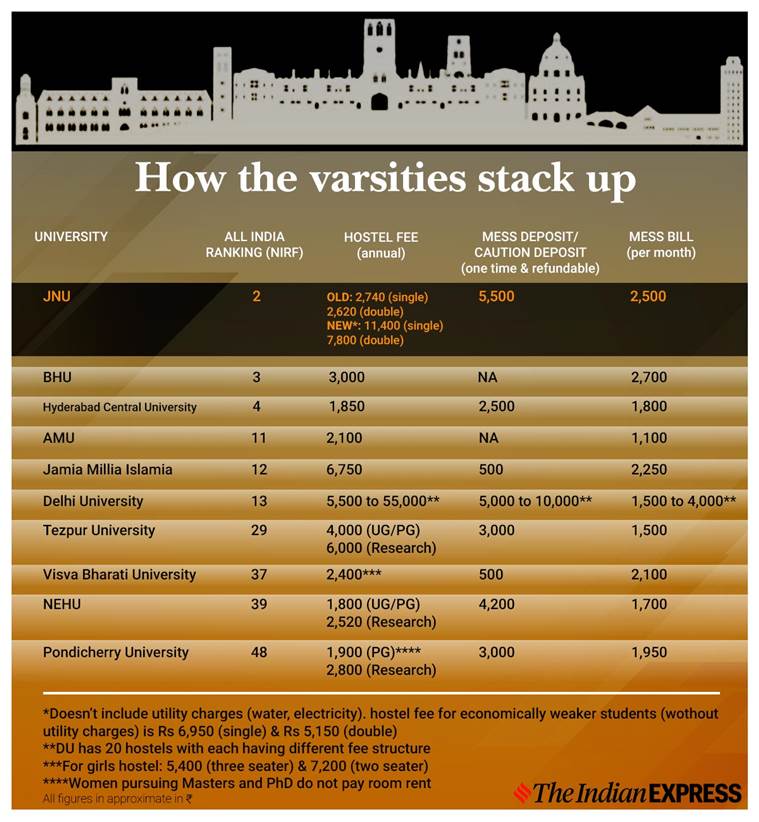 Of the top 10 central universities (CUs) in the country, students at Jawaharlal Nehru University (JNU) will now be paying the highest hostel fees, shows an analysis by The Indian Express.