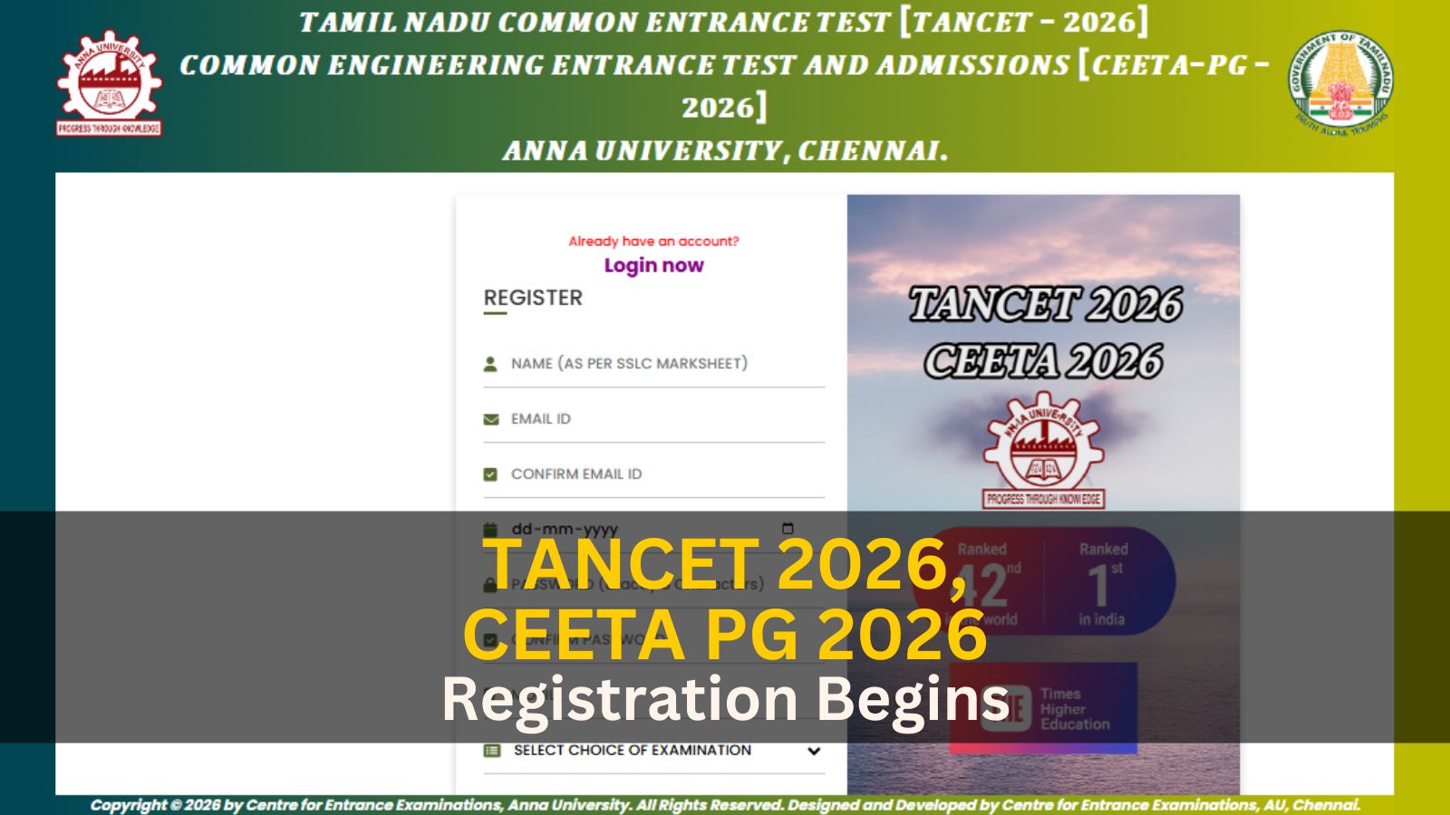 TANCET 2026 registration begins, along with CEETA-PG 2026 (Screengrab from official website)