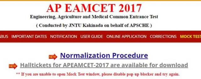 AP EAMCET 2017 hall tickets can be downloaded from the official website