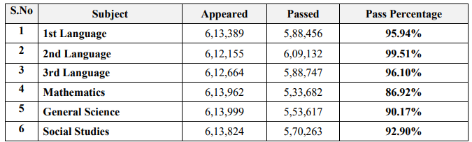 - Total Number of Candidates Appeared in SSC Public Examinations: 6,14,459