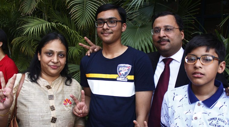 CBSE 10th class topper Prakhar Mittal with his parents and Friends in Gurugram on Tuesday. Express Photo by Manoj Kumar