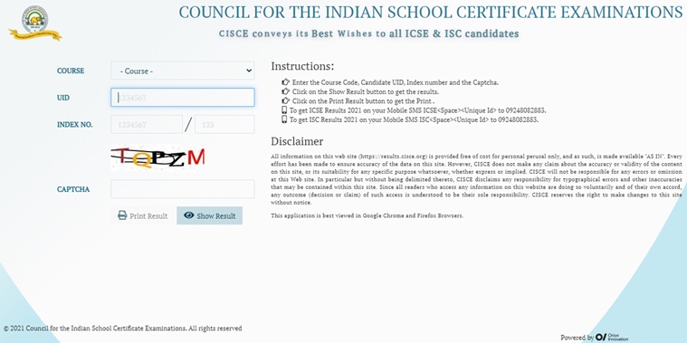 1. To get ICSE Results 2021 on your Mobile SMS ICSE<Space><Unique Id> to 09248082883.