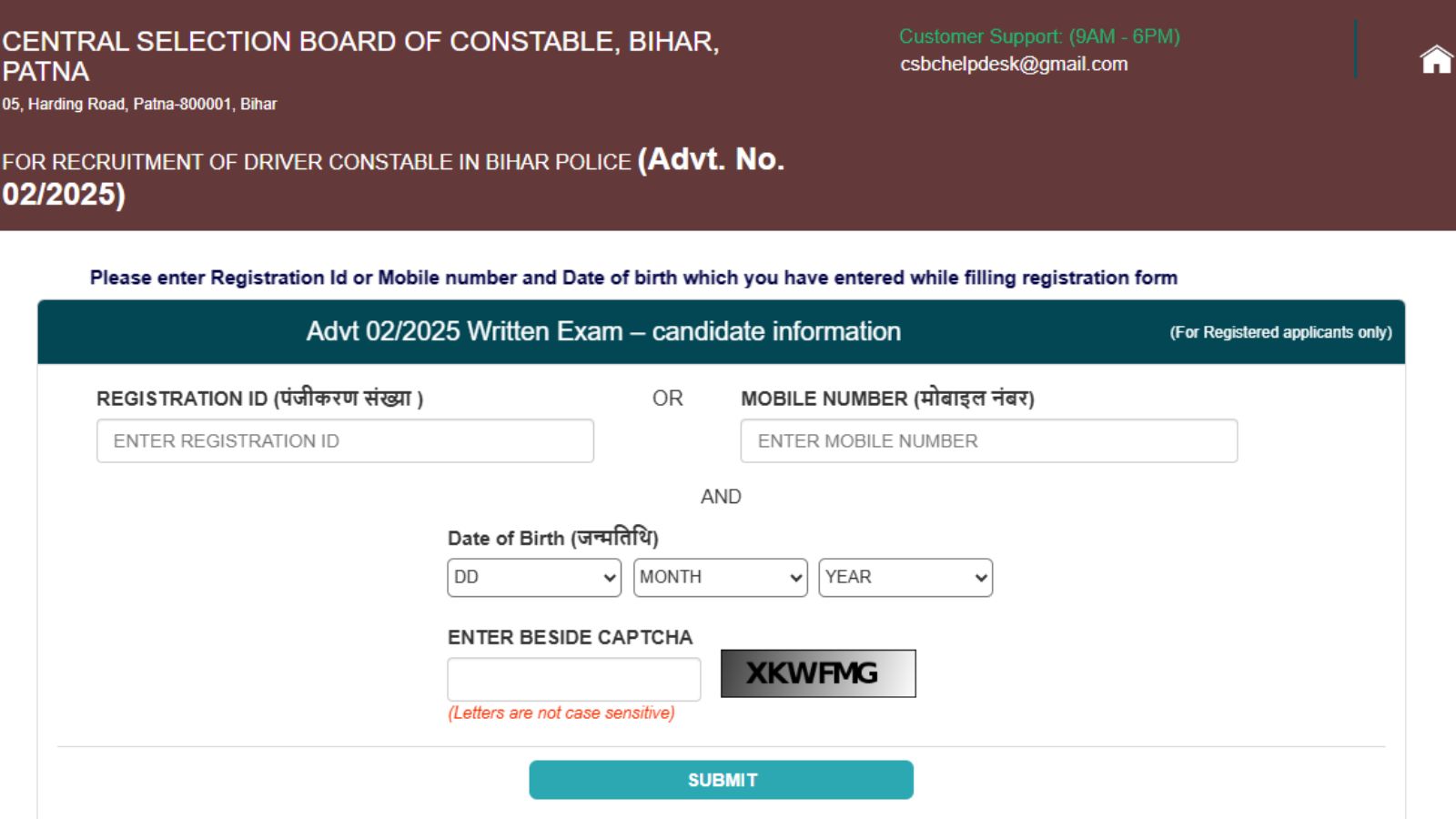 Step 3: Enter Registration/Mobile Number, Date of Birth and Captcha.