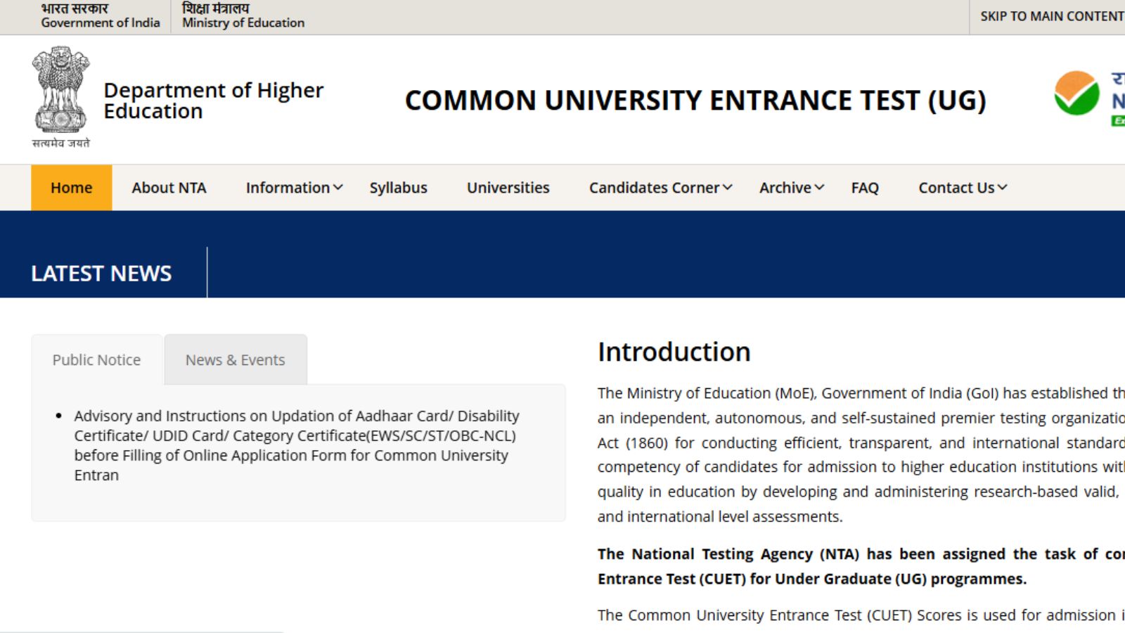 The National Testing Agency (NTA) has announced that the Common University Entrance Test for Undergraduate courses (CUET‑UG) will be conducted in May 2026. Ahead of the application process, the agency has urged candidates to ensure that their Aadhaar details, UDID cards, and category certificates are updated. The Agency said this step is crucial to avoid discrepancies, grievances, or possible rejection of applications at later stages.